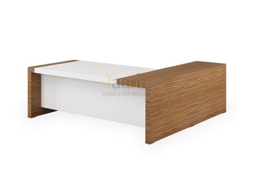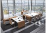Мебель в кабинете руководителя должна быть выдержана в деловом стиле, но обладать при этом оригинальностью и подчеркивать его вкус. Стандартизированные комплекты, которые приобретаются для персонала, тут не подойдут. Нужно что-то необычное, современное и функциональное. Отличным вариантом станет данный комплект, имеющий нестандартную конструкцию, но в то же время строгие и правильные линии. Отсутствие привычных перегородок, проемы и углубления, делающие мебель визуально тонкой и почти прозрачной, выгодно отличают его от классической и уже приевшейся офисной мебели.