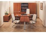 Комплект мебели «Патриот» придает кабинету руководителя нужную строгость и солидность. Уютные оттенки поверхностей «под дерево» стильным образом сочетаются с металлическими деталями и опорными элементами составляющих. Высокая функциональность предметов ансамбля не уступает их изысканности. Универсальный дизайн мебели позволяет ей легко вписаться в любой современный интерьер, например, в стиле модерн. Подобная респектабельная обстановка кабинета настраивает на продуктивный диалог руководителя и его подчиненных или посетителей компании. Стоимость кабинета в цвете сакура дороже на 10%.